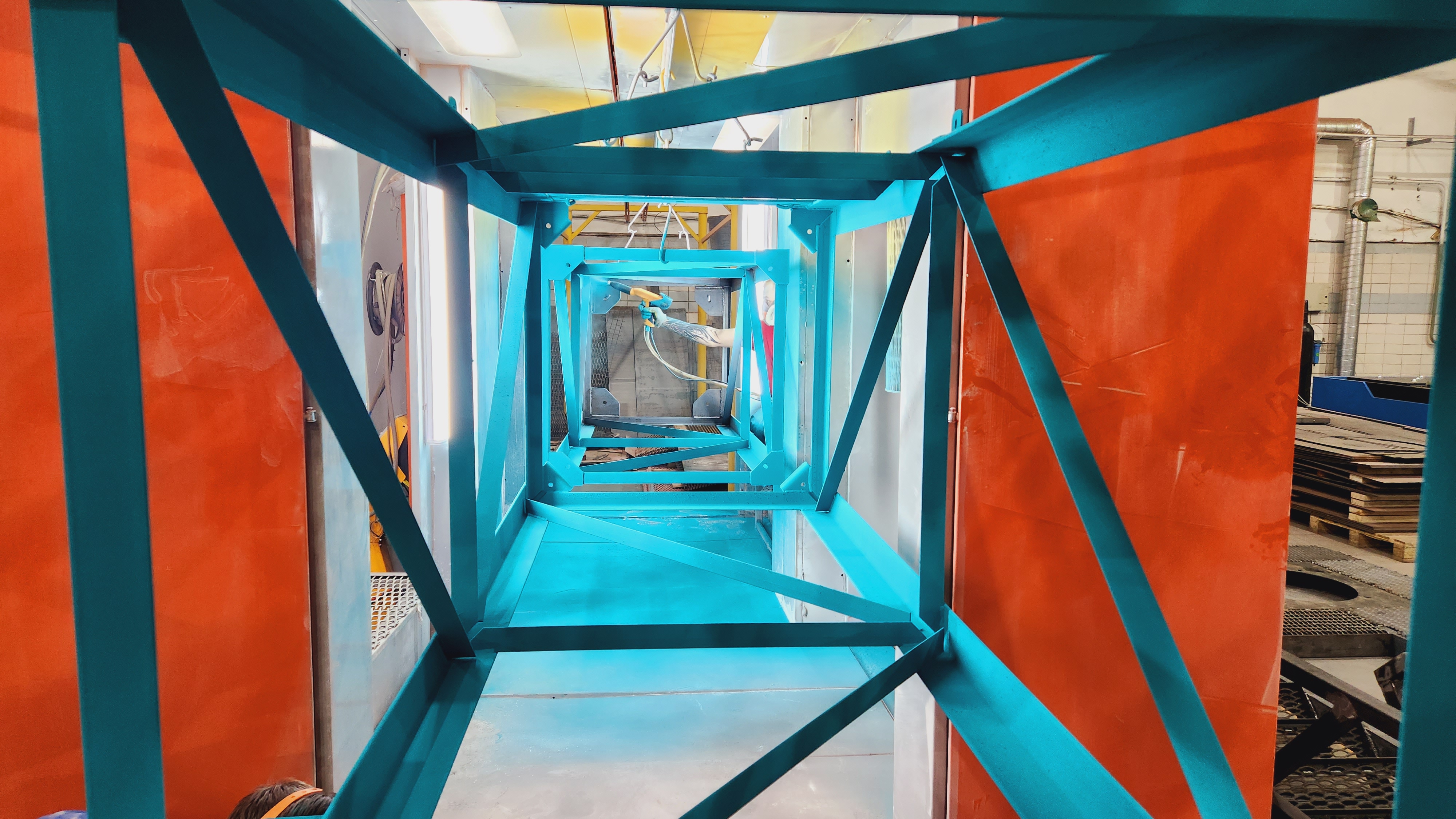 Основу полигона составляет стальная цилиндрическая конструкция, оснащенная комплексом технологического оборудования. С внешней стороны расположены маршевые лестницы с ограждениями, ведущие на верхнюю рабочую площадку. Площадка оборудована консольной балкой для отработки спусковых операций и технологическим колодцем для доступа во внутреннее пространство.